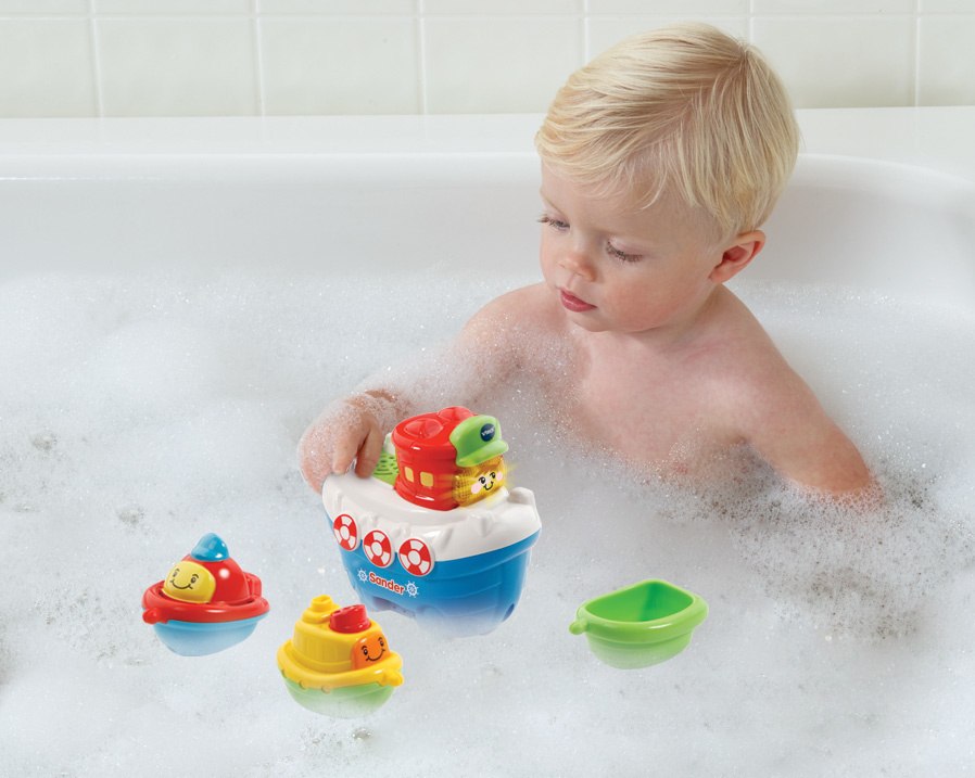 Spetter en leer met Blub Blub Bad en ontdek de waterwereld! Druk op de knipperende gezichttoets om geluidseffecten, vrolijke zinnetjes en gezongen liedjes te horen. Neem Eva Eend mee in bad en laat haar in het water drijven of rijd ermee in het rond en ho