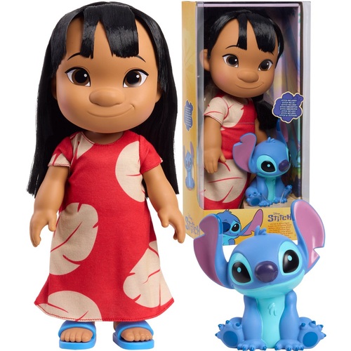 Ga mee op avontuur met Disney’s Lilo en haar ondeugende vriend Stitch. Met deze Lilo & Stitch poppenset kunnen kinderen hun favoriete momenten naspelen of zelf nieuwe eilandverhalen bedenken. De Lilo-pop van ca. 35 cm draagt haar herkenbare jurk met Hawaï
