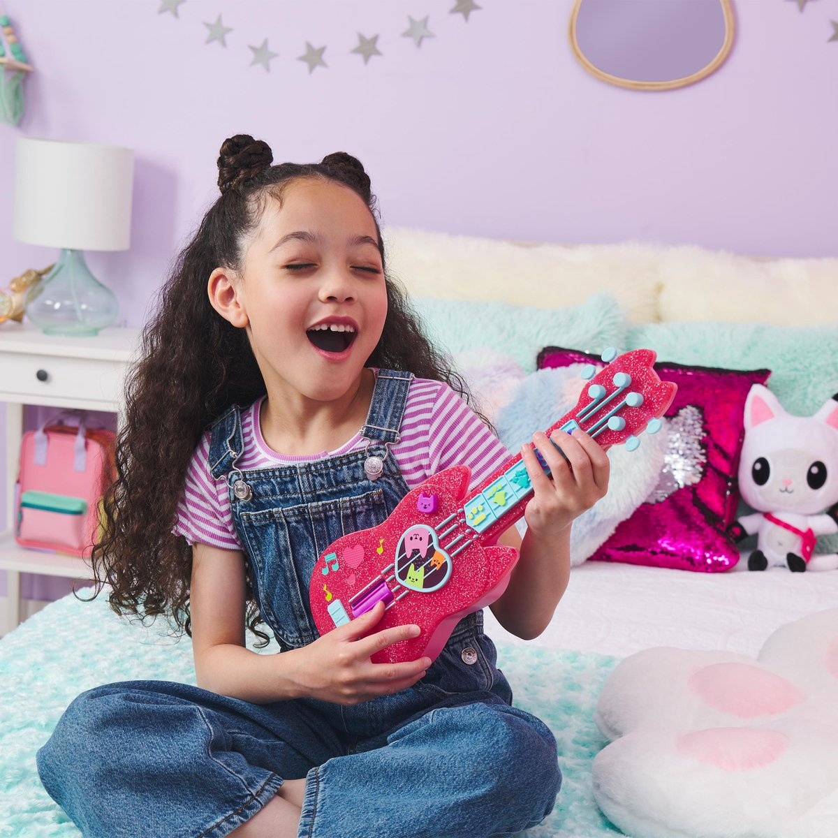 Maak je klaar om magische muzikale melodieën te maken met Gabby’s Miauw-eldig Ukulele! Met een authentiek ontwerp dat trouw is aan de show, ziet Gabby’s ukelele er precies uit als de geweldige babygitaar die je ziet in de serie Gabby’s