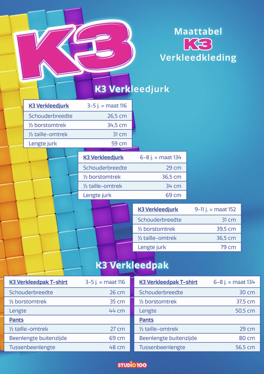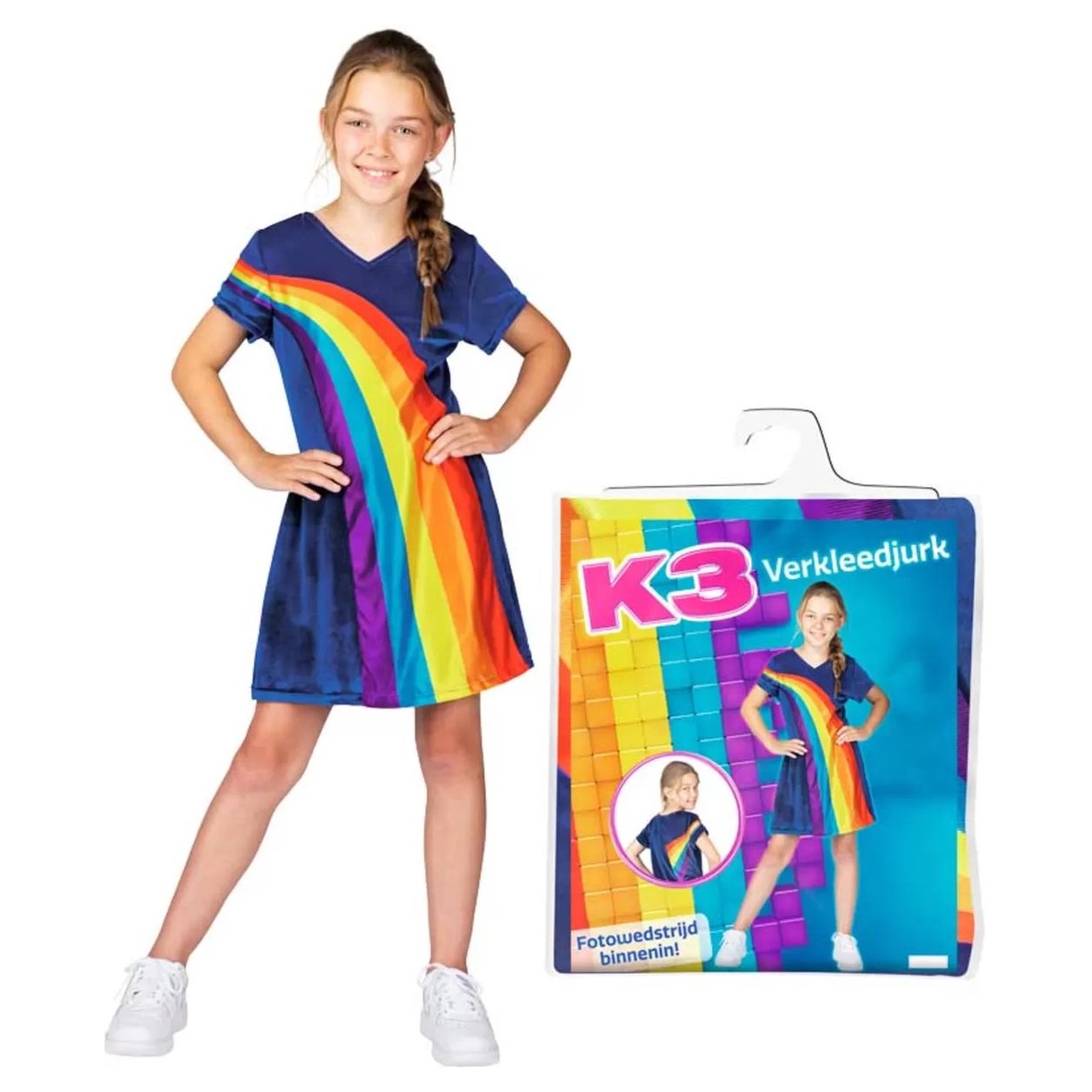 Post een originele foto of video van je kind met de nieuwste K3 verkleedkledij op social media en maak kans op een mooie K3 prijs. Zie uitleg wedstrijd in verpakking van het K3 verkleedjurkje.