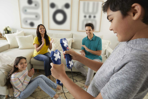 Bekijk de lampjes goed en haal niks door elkaar tijdens het spannende elektronisch spel Crossed Signals! Kies 1 van de 4 verschillende spellen op de unit. Als de spelers de lampjes zien, moeten ze snel reageren! Zie je een pijl? Beweeg de stick in die richting. Zie je een ‘X’? Beweeg dan in de tegenovergestelde richting. Branden beide pijlen? Schudden maar! Speel alleen of samen met maximaal 3 vrienden. Het spel CROSSED SIGNALS gebruikt licht en spraakopdrachten om je in beweging te krijgen en je snelheid en nauwkeurigheid te testen. Er is ook een duelmodus waarbij 2 spelers elk een stick gebruiken. De speler met de hoogste score is de winnaar! Speel dit waanzinnige spel met licht en actie samen met maximaal 4 spelers! Het spel CROSSED SIGNALS krijgt iedere speelafspraak of spelletjesavond op gang met actie voor binnen en buiten. Afwijkende kleuren en versieringen mogelijk. Werkt op 3 ‘AAA’ (LR03) batterijen (niet inbegrepen).