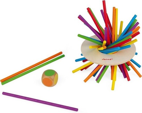 Dit spel ontwikkelt de fijne motoriek en strategie. Ideaal voor regenachtige dagen met het gezin of om kinderen bezig te houden voor het eten! Dit spel bevat 36 stokjes, een schijf en een houten dobbelsteen. Voor nog meer plezier kun je met maximaal 6 spelers spelen.