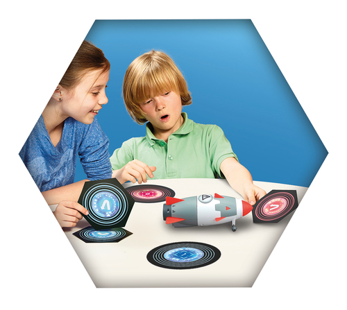 In dit spannende observatie- en reactiespel heeft een verwarde professor een raket afgevuurd naar de aarde! Red de wereld door de raket naar je doel in de oceaan te sturen. Gebruik hiervoor je gecodeerde kaarten: wanneer het lampje in jouw kleur brandt, plaats je een kaart voor de raket om ze te besturen. Maar opgelet: het lampje veranderd al snel weer van kleur, en dan zal de raket niet meer op je kaarten reageren.