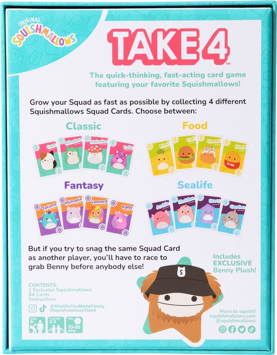 Take4 Squishmallow is een snel observatie- en reactiespel!