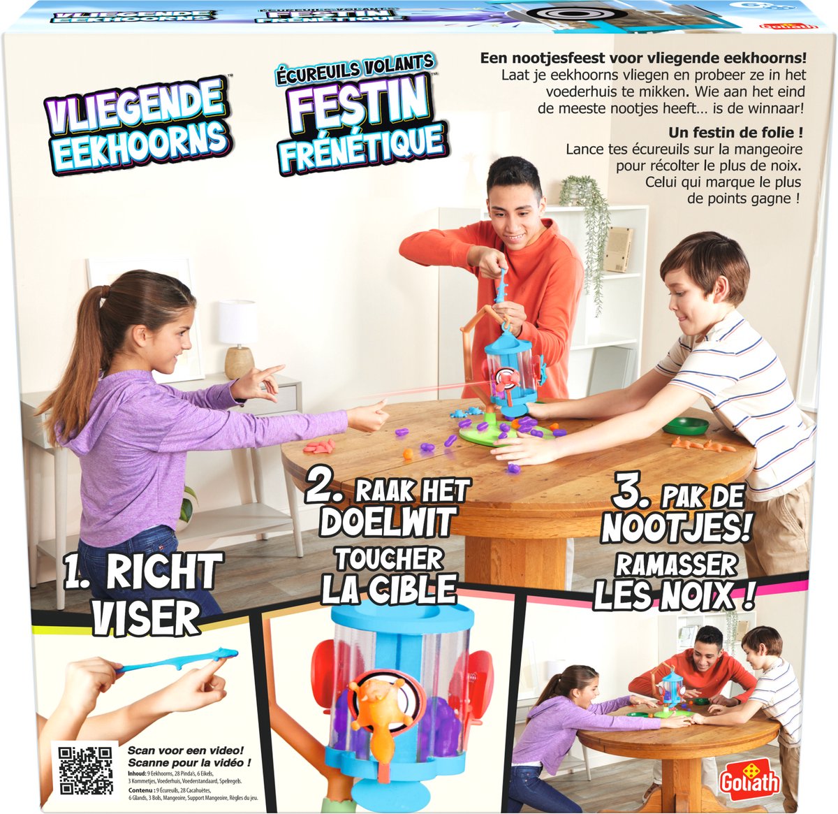 Vliegende Eekhoorns is een leuk en actief spel waarin je eekhoorns moet lanceren en zoveel mogelijk pinda’s moet verzamelen. Richt goed, schiet de eekhoorns naar het doelwit en laat de pinda’s vallen. Maar wees snel, want iedereen probeert tegelijkertijd