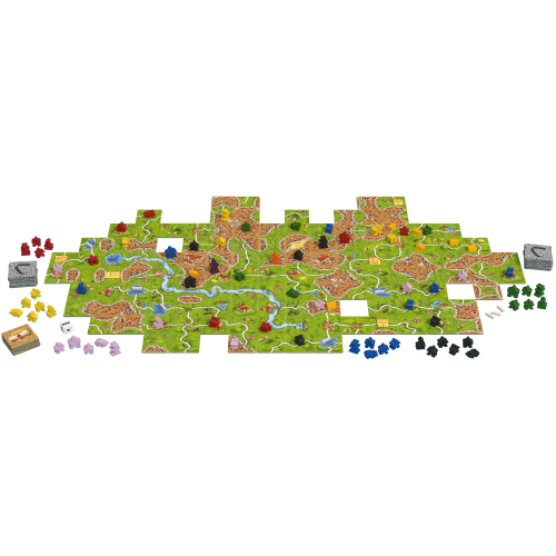 Carcassonnepakket met het basisspel en maar liefst 11 uitbreidingen in het nieuwe artwork! Hiermee kun je oneindig variëren. Het speelmateriaal past praktisch in de doos, waardoor je alles altijd gemakkelijk bij de hand hebt.