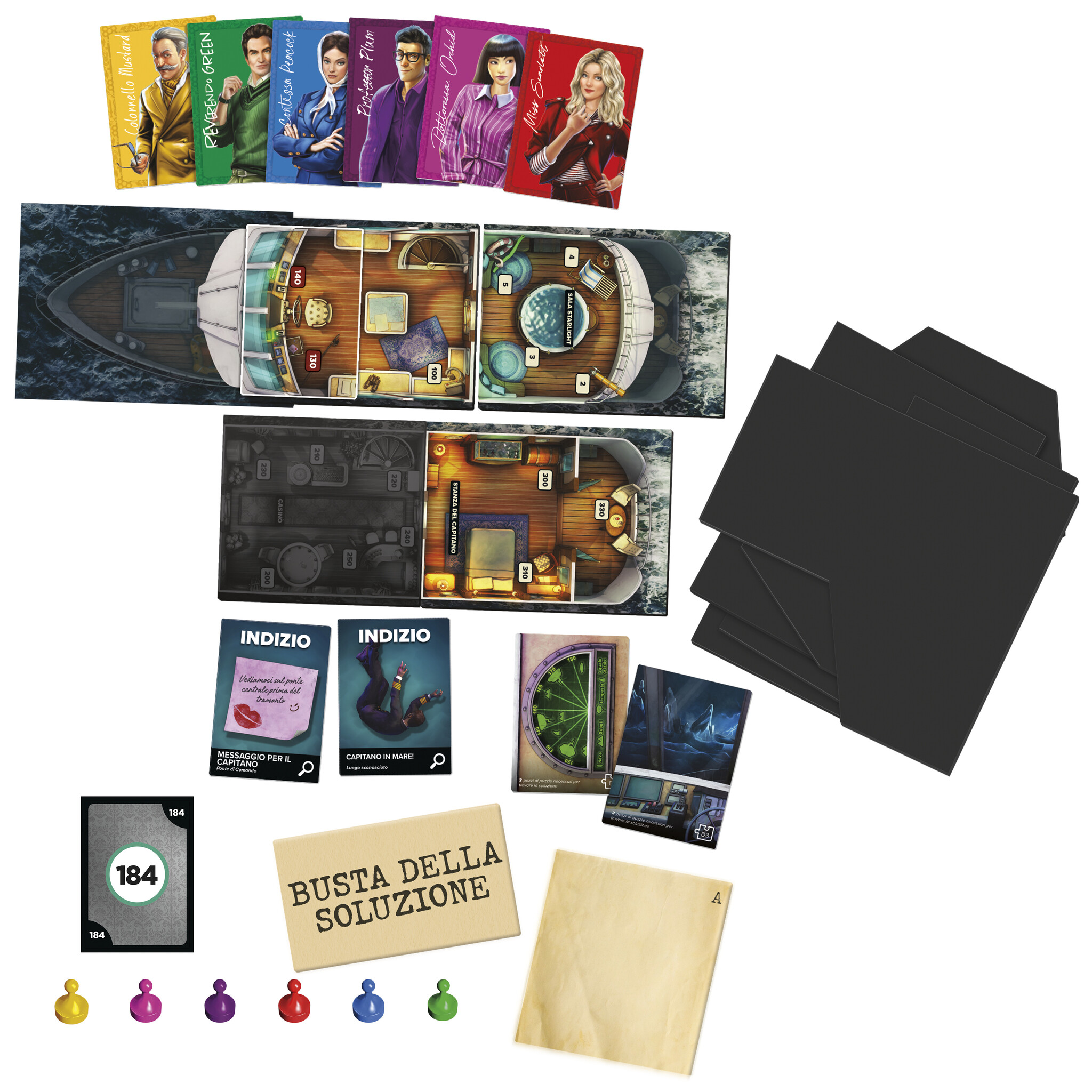 Je hebt een uitnodiging aangenomen voor een volledig betaalde vakantie aan boord van het luxejacht Lady Marigold II, een populair casino dat eigendom is van kapitein Melville. Op een nacht gaat het stormen en iemand ziet de kapitein met zijn gezicht naar beneden in zee drijven! Terwijl het schip water maakt, beleven jij en je medespelers de ultieme test: samenwerken om van het jacht te ontsnappen en bepalen wie de kapitein overboord heeft geduwd, waar dat gebeurde en waarom. Het ontsnappings- en detectivebordspel Cluedo Sabotage op zee combineert de intrige en personages van het klassieke moordmysteriespel Cluedo met een meeslepende escape room-ervaring. Spelers verplaatsen hun pion over het bord dat kamer voor kamer wordt uitgebreid, terwijl ze speuren op het jacht, kaarten trekken, puzzels oplossen, nieuwe kamers ontgrendelen en logisch nadenken om aanwijzingen te ontdekken. Na ontsnapping van het jacht bekijken de spelers de aanwijzingen die ze hebben verzameld, om de correcte beschuldiging te doen en het spel te winnen! Dit spannende familiebordspel is voor 1-6 spelers van 10+ en een geweldig cadeau voor fans van detectivespellen