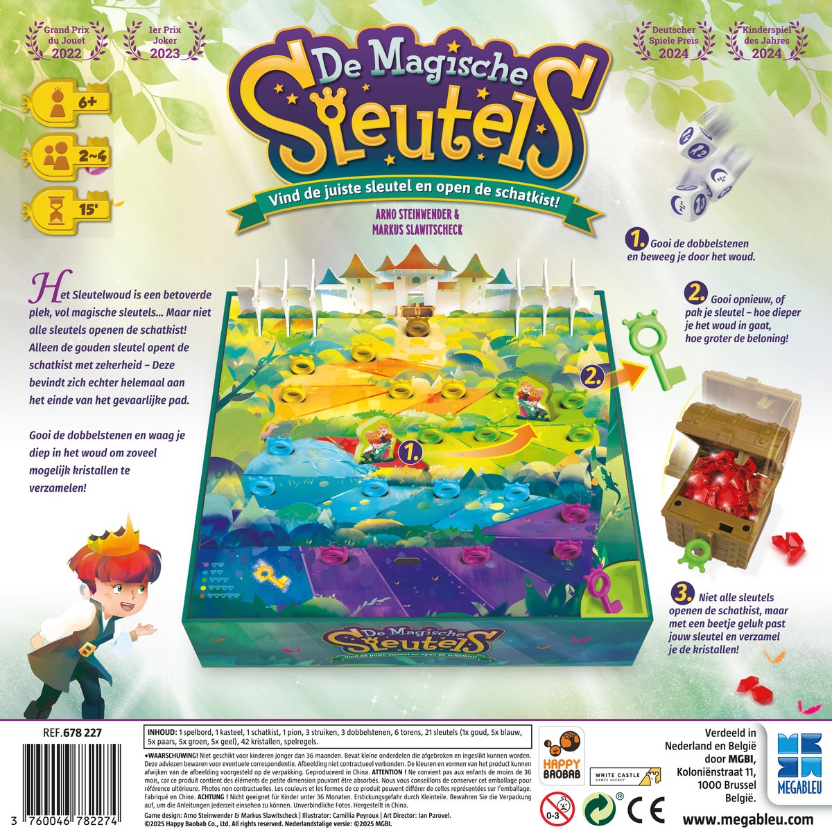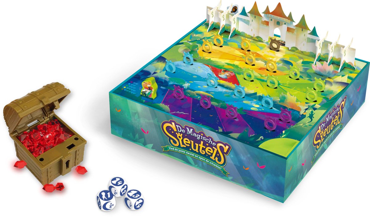 De Magische Sleutels van Megableu is een sprookjesachtig bordspel dat spanning, strategie en een vleugje geluk combineert. Ga op zoek naar de juiste sleutels om de schatkist te openen en verzamel zoveel mogelijk kristallen. Wie als eerste het vereiste aan