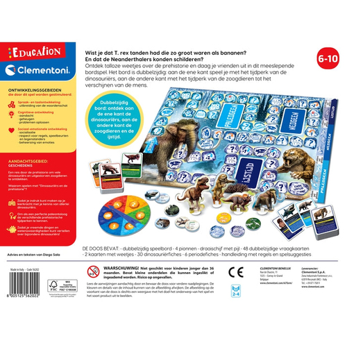 Een boeiend bordspel met quizzen waarmee kinderen via de prehistorie de angstaanjagendste dinosaurussen kunnen leren kennen.