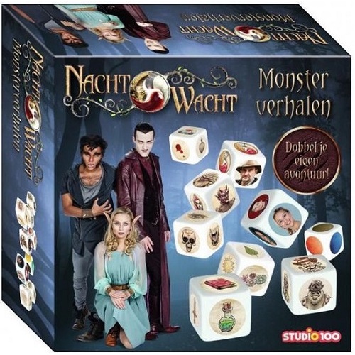 Ben jij ook zo dol op spannende verhalen van Nachtwacht? Maak nu zelf je avonturen met Keelin, Vlad en Wilko en bedenk de spannendste verhalen. Rol de dobbelstenen en laat je verbeelding de vrije loop. Er staan maar liefst 54 verschillende afbeeldingen op de dobbelstenen, de combinaties zijn dus bijna eindeloos.