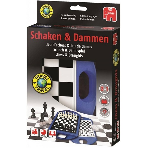 Schaken en Dammen reisspel: deze denkspellen behoren tot de klassiekers en houden de geest jong. Dit reisspel komt in een handig koffertje en neem je overal gemakkelijk mee naartoe! Het spel is uitgevoerd met een dubbelzijdig speelbord (schaken & dammen).