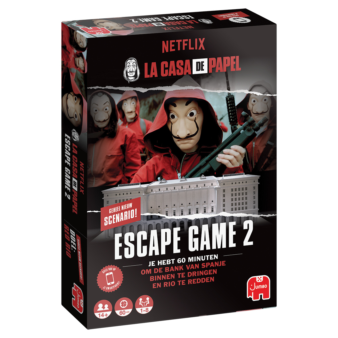 Het tweede deel van het spannende ontsnappingsspel vol verwijzingen naar de fenomenale serie La Casa de Papel. Na jullie geslaagde overval op de Koninklijke Munt van Spanje zijn jullie weer terug voor een nieuw kunststukje! Jullie hebben twee missies: bev
