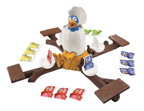Vier kleine vogeltjes zitten op een tak naast een groot ei. Dit ei kan elk moment uitkomen en dan schiet de dolgedraaide Karel Koekoek tevoorschijn! Pas dus op, want Karel Koekoek duwt jouw vogeltje zo van zijn tak! Dan ben je een kaartje kwijt. Gelukkig kun je jezelf verdedigen. Door razendsnel links of rechts op jouw tak te tikken, draait het ei naar de volgende speler. Ben jij Karel Koekoek te slim af, zodat je niet als eerste drie kaartjes verliest?