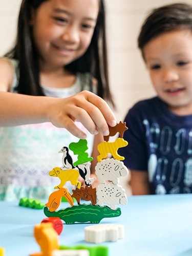 De dieren willen hun kunstje vertonen – de grote piramide! Nu moet er voorzichtig en behendig te werk worden gegaan: wie kan de pinguin op de krokodil zetten, het schaap op de pinguin en de slang op het schaap. Ook de miereneter wil bovenop de piramide kl