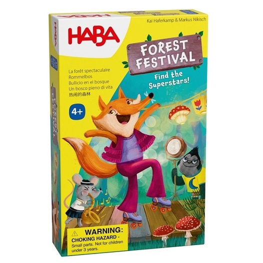 Haba Forest Festival – Dierenshow Kom kijken bij de leukste dierenshow in het spel Forest Festival van Haba! De dieren geven een prachtige voorstelling met allemaal verschillende kunstjes. Het is aan jou om te onthouden welke dieren hebben opgetreden. Hiermee verzamel je zoveel mogelijk sterren. Wie na 12 rondes de meeste sterren heeft, wint het spel. Forest Festival is ideaal voor gezinnen met jonge kinderen. Het spel heeft vrolijke illustraties, stevige materialen en duidelijke spelregels die snel te leren zijn. Het stimuleert belangrijke vaardigheden. Zoals concentratie, geheugen, tellen en het herkennen van patronen. Elke ronde voelt verrassend door de afwisseling en het speelse thema.