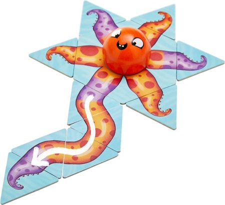 Kleine Kalmario is nog maar een kleine inktvis. Help jij hem groter worden? Met een klein beetje geluk en een goed geheugen kan je de tentakelkaartjes van de juiste kleur aan elkaar maken. Zo krijgt die kleine Kalmario lange tentakels en groeit hij tot een grote inktvis.