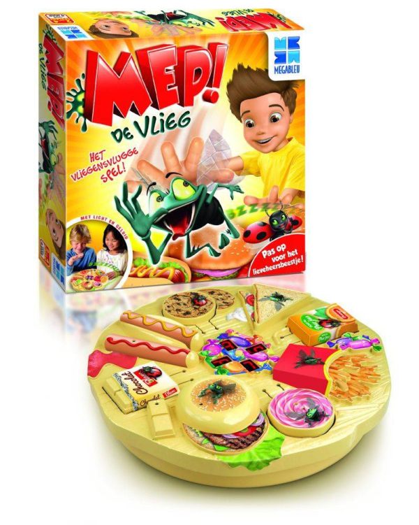 De jacht op de vliegen is geopend… Je bord wordt bestookt met vliegen die rond je eten fladderen. Zodra een vlieg voor jou stopt, moet je er snel op meppen om een punt te scoren en dit alvorens ze weer weg vliegt. Maar opgelet, soms is het een lieveheersbeestje dat op het eten gaat zitten. Als je hierop mept, dan verlies je een punt. Ben jij de snelste vliegenmepper? Inhoud: 1 elektronisch dienblad met licht en geluid*, 1 stickervel, spelregels. *Werkt op 3 AA batterijen, niet inbegrepen. 2 tot 4 spelers, vanaf 4 jaar