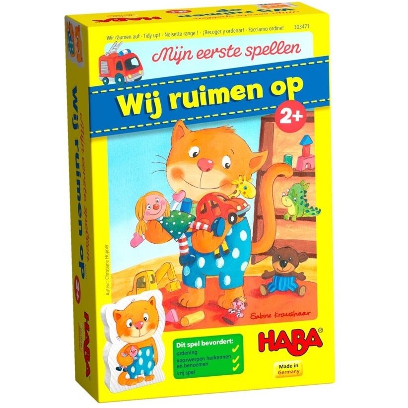 De kleine kater Tapsi heeft de hele dag gespeeld en nu is het tijd om op te ruimen. Maar waar moeten de blokken naartoe? Waar vindt de brandweer een plekje en waar hoort de knuffelgiraf? Wie de speelgoedplaatjes correct or