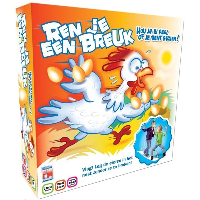 “Wat is het moeilijk voor een kip om haar eieren te verplaatsen zonder ze te breken. Ben jij soms handiger? Bevestig een magnetische kip aan je middel, pak een ei en probeer het nest te bereiken zonder het te breken, anders moet je herbeginnen! Maar pas o