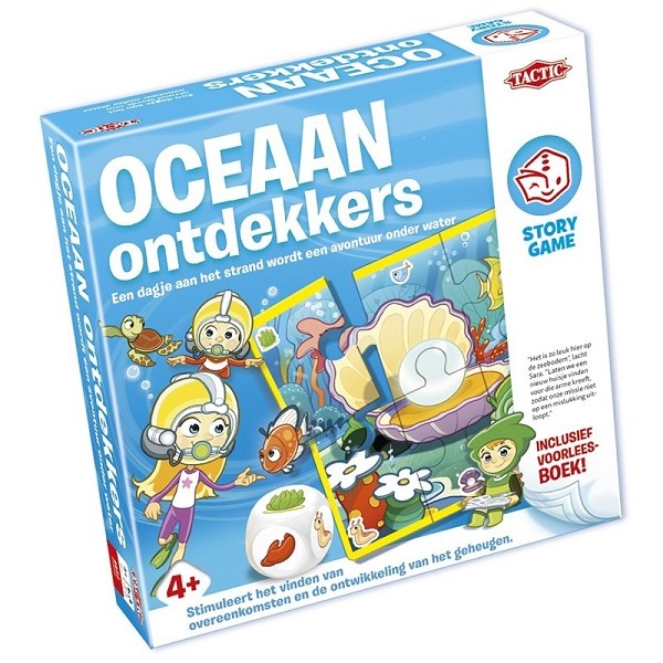 Dit spel van Story Game is alleen voor oceaan ontdekkers! Een dagje aan het strand wordt al gauw een spannende speurtocht naar de bodem van de oceaan. Sluit je aan bij de club van dappere avonturiers en gooi met de dobbelsteen om de stukjes van de puzzel compleet te maken. Bij dit spel wordt ook een voorleesboek meegeleverd zodat het spel spannender wordt en je het verhaal van de oceaan zelf kunt beleven. Dit spel stimuleert het vinden van de overeenkomsten en de ontwikkeling van het geheugen.