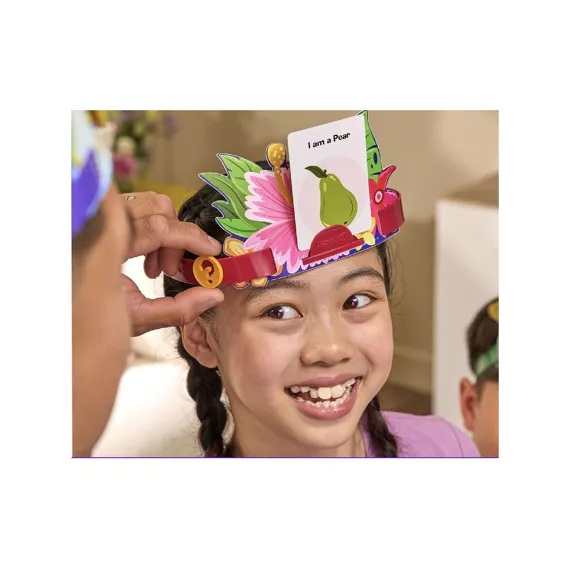 Ontdek het populaire Wat ben ik? – 3e editie Hedbanz-spel! Dit snelle en leuke vragenspel daagt spelers uit om door slimme ja/nee-vragen te raden wie of wat ze zijn. Met 6 nieuwe Hedbanz-hoofdbanden en 69 gloednieuwe kaartillustraties, zoals een pilotenbril, eenhoorn, haai, brownie en pauw, is elk spel verrassend en grappig. Speel alleen of met vrienden en verzamel als eerste 3 scorebadges om te winnen. Perfect voor kinderen van 6 tot 12 jaar, maar ook leuk voor het hele gezin!