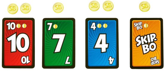 Dit is het Skip-Bo kaartspel waar spelers gek op zijn, maar met speciale munten die het spel een strategische draai geven! Spelers moeten nog steeds proberen alle kaarten van hun pakstapel weg te spelen, maar de munten kunnen helpen om een juiste kaart in
