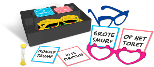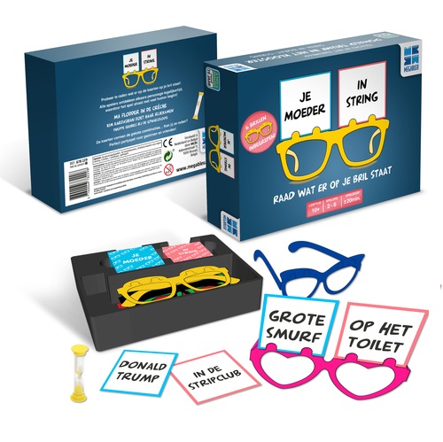 Je Moeder in String is een hilarisch partyspel waarbij je raadt welke gekke combinatie op je bril staat.Denk aan bekende personages in absurde situaties – zoals Philippe Geubels bij de gynaecoloog. Iedere speler zet een gekleurde bril op en speelt tegelijk, met als doel als eerste zijn of haar combinatie te raden.De slappe lach is onvermijdelijk met dit partyspel, perfect voor feestjes, vriendenavonden of gewoon als je zin hebt in pure chaos en lol!