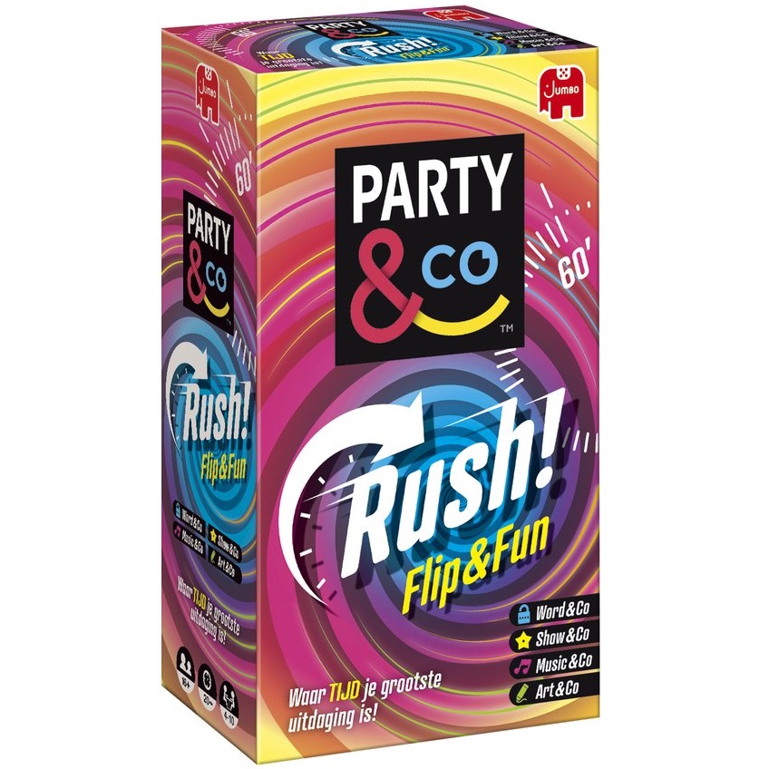 Duik in de wereld van Party & Co Rush, waar snelheid en sensatie centraal staan! Deze vlotte, versnelde editie maakt van elke speelsessie een spannende race tegen de klok. Speciaal ontworpen voor een jong publiek vanaf 14 jaar, met v