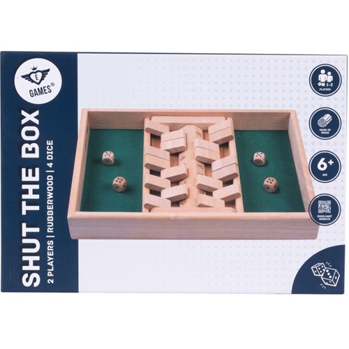 Speel het klassieke dobbelspel Shut The Box in deze dubbele uitvoering, ideaal voor extra speelplezier en meerdere spelers. De stevige houten bak is voorzien van een ingelegd vilt speelveld, wat zorgt voor een luxe uitstraling en een gedempte dobbelervaring.