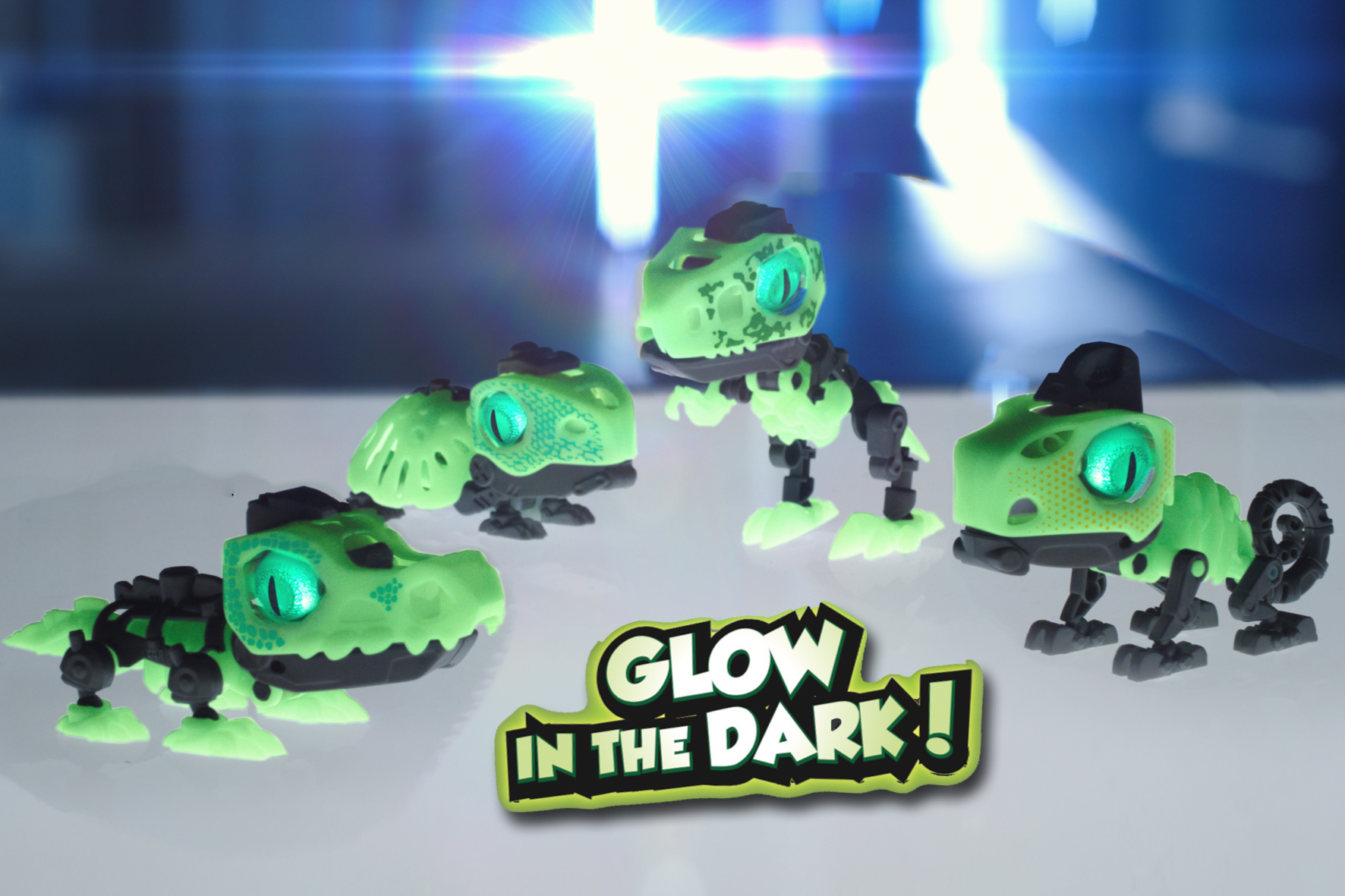 De Biopod Dino’s wachten maar op 1 ding en dat is vrijgelaten worden uit hun capsule! Ze hebben unieke, oplichtende ogen, die al zichtbaar zijn in de capsule. In iedere Biopod capsule vind je twee dino’s die je zelf in elkaar moet zetten met meer dan 15 o
