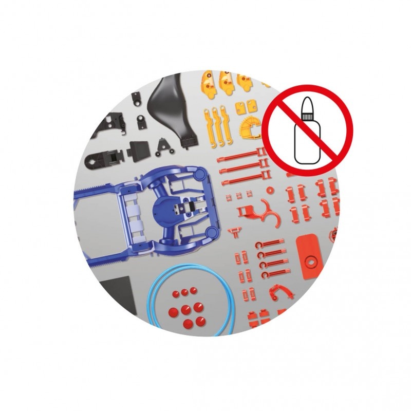 De hand past zich aan om voorwerpen zoals ballen of flessen te dragen. Het kan worden aangepast voor zowel rechtshandige als linkshandige mensen.