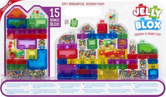 Laat de verbeelding van kinderen tot leven komen met Jelly Blox Mega Pack! Met de blokken van Jelly Blox Mega Pack kunnen kinderen niet alleen bouwen, ze kunnen er ook in knijpen en zelfs platdrukken. Sommige blokken zijn gevuld met materialen zoals zand, blokjes of schuimballetjes die de zintuigen stimuleren en de sensorische tactiliteit bevorderen.