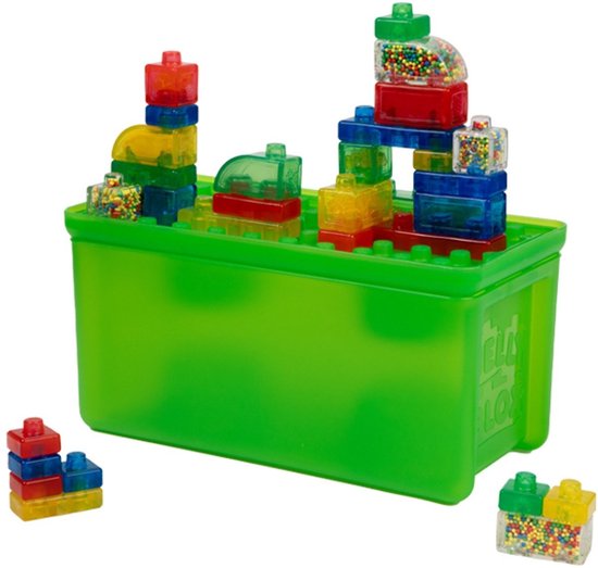 Laat de verbeelding van kinderen tot leven komen met Jelly Blox! Met de zachte blokken Jelly Blox kunnen kinderen bouwen, knijpen en zelfs platdrukken. Sommige blokken zijn gevuld met materialen zoals zand, blokjes of schuimballetj