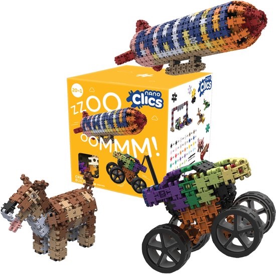 HOU JE VAN BOUWEN MET BLOKKEN? Dan zul je dol zijn op Nano Clics. Want met de nieuwe Nano Clics bouwblokken bouw je je eigen Dino, tijger of één van de andere bouwwerken via de gratis meegeleverde bouwplannen. Met deze set bouw je een coole truck, boot, een huis,….