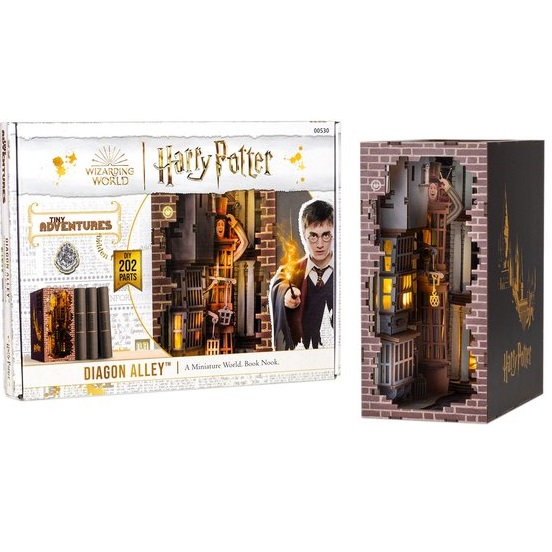 Revell 00530 Tiny Adventures – Harry Potter “Diagon Alley” is dé betoverende blikvanger voor jouw boekenkast. Deze houten modelbouwset laat je zelf een magisch miniatuurtafereel bouwen, rechtstreeks uit de wereld van Zweinstein. De iconische Wegisweg (Dia