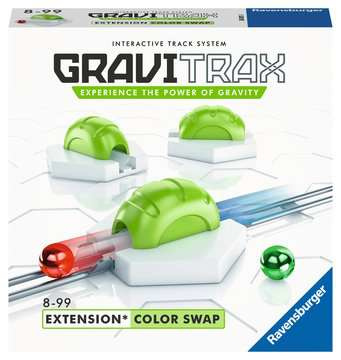 Als bij toverslag verandert de bal van kleur terwijl hij door de Color Swap rolt! In combinatie met een startset brengt dit een nieuw verrassingselement in de GraviTrax-wereld. De Color Swap brengt een nieuw verrassingselement in de GraviTrax-wereld. Als