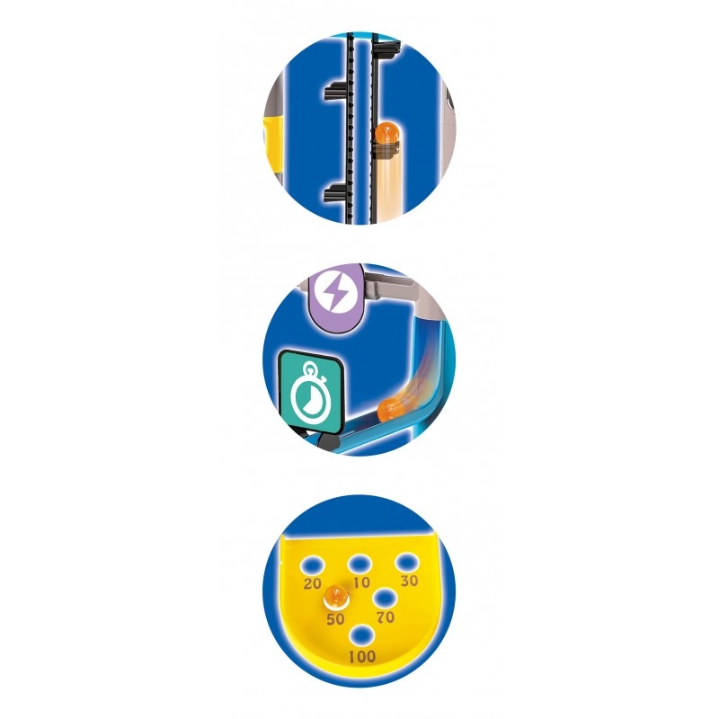 Beweeg deelelementen om het traject van de knikker te bepalen en te voorkomen dat deze valt! Plaats de tw