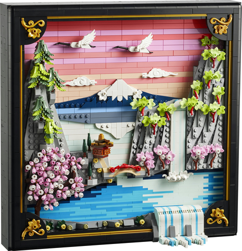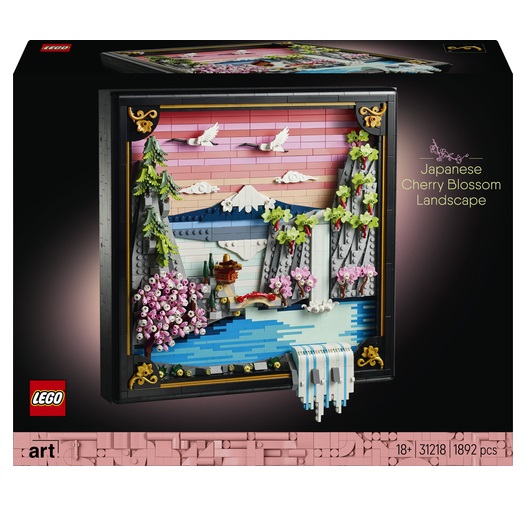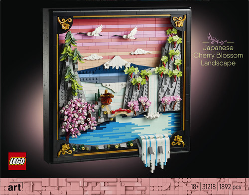 Haal kleur en natuur in huis met deze LEGO® Art Landschap met Japanse kersenbloesems (31218) bouwset voor volwassenen. Deze prachtige 3D-muurkunst van stenen is geïnspireerd op de schoonheid van de lente in Japan en Ukiyo-e kunst. Het geeft een traditioneel Japans landschap weer met de berg Fuji, een theehuis, een brug, een waterval, Japanse kraanvogels en kersenbloesems, een Japanse esdoorn en een kransspar.