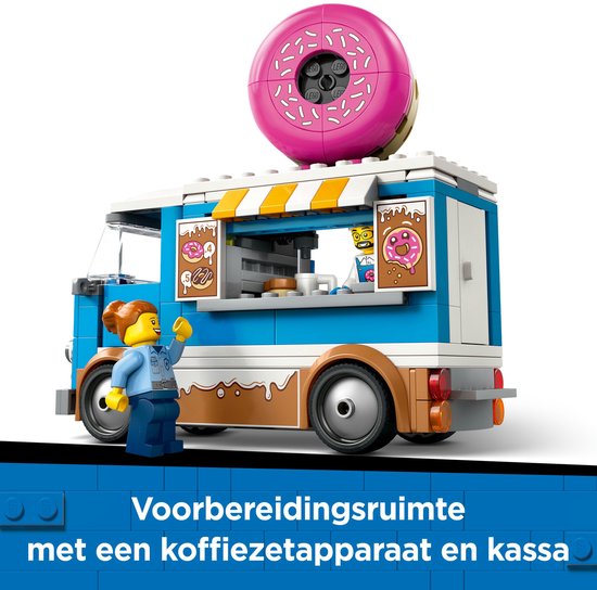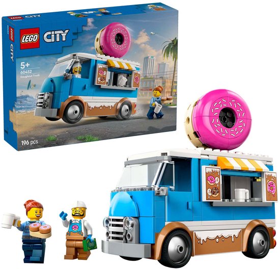 Dit is het ultieme speelgoedvoertuig voor zoetekauwen van 5 jaar en ouder! De LEGO® City Donuttruck speelset (60452) heeft heerlijke glazuurdecoratie, een gigantische donut op het dak en een keukengedeelte met een koffiezetapparaat en kassa. Kinderen kunn