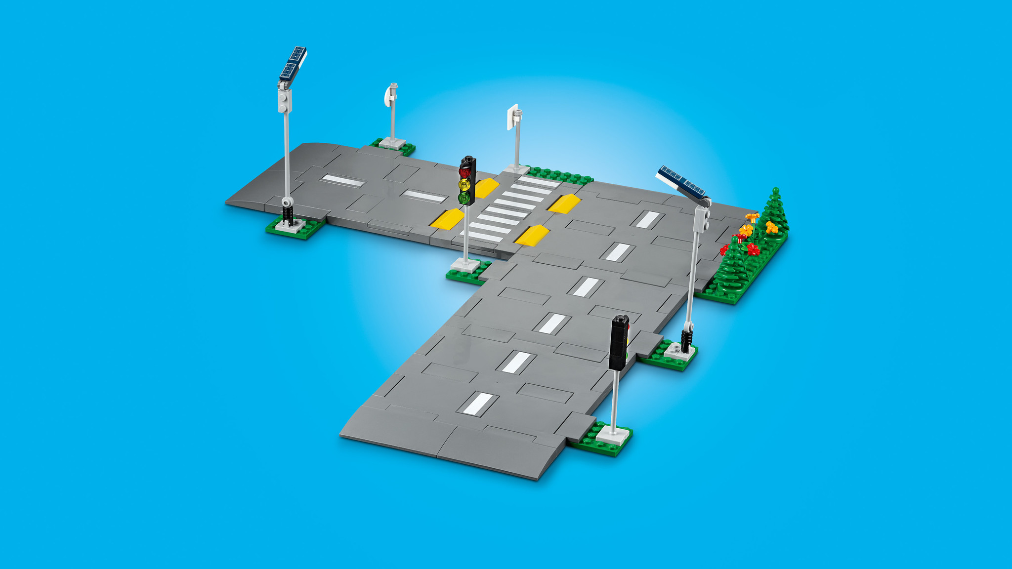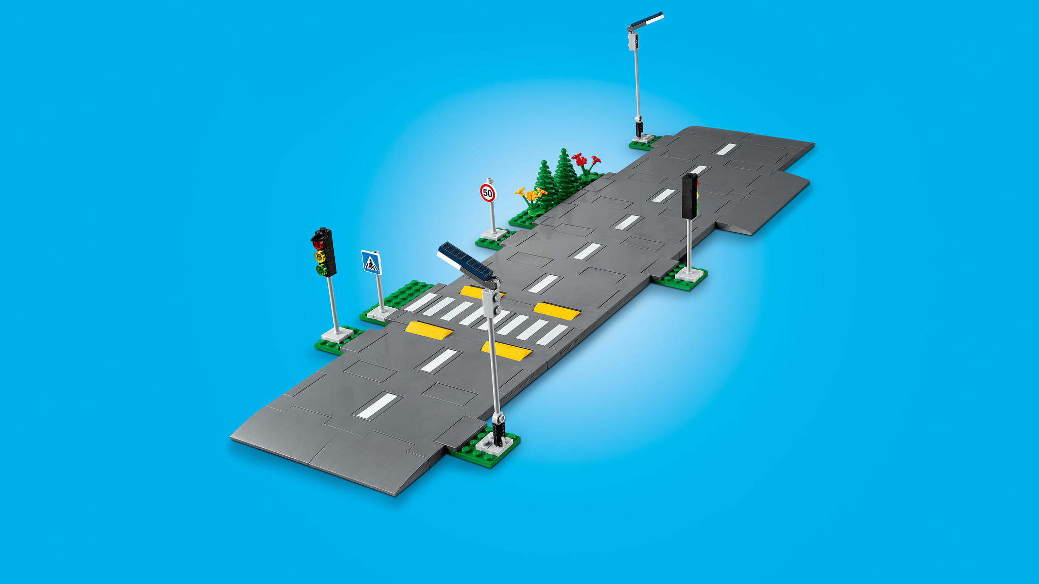 Geef jouw LEGO® City creaties een realistische uitstraling en verbind ze met andere sets om je stad uit te breiden met deze coole LEGO City Wegplaten. Deze geweldige bouwset bevat lantaarnpalen die oplichten in het donker, stoplichten, verkeersborden, weg