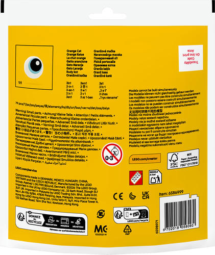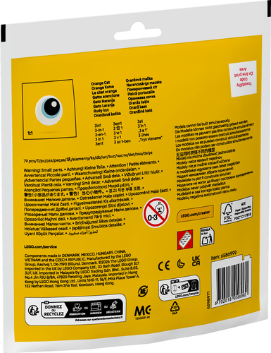 Met deze schattige 3-in-1 speelset kunnen dierenliefhebbers een kat bouwen met een kommetje melk voordat ze hem ombouwen tot een krokodil en een plas water of een uil met een nest en 2 eieren.