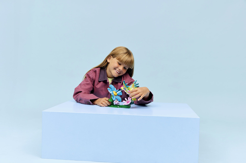 VERSTELBARE LEGO® DIEREN – de kolibrie heeft een dynamische vlieghouding en een verstelbare nek, vleugels en staart, terwijl de vlinder beweegbare vleugels heeft