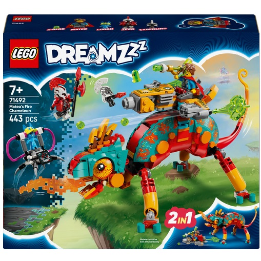 Wakker de creativiteit aan met de bouwset LEGO® DREAMZzz™ Mateo’s vuurkameleon (71492) voor kinderen vanaf 7 jaar, waarmee jongens en meisjes samen met held Mateo Logan kunnen redden van de gemene Zero.
