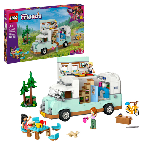 Kinderen kunnen genieten van fantasierijke rollenspellen met deze leuke bouwset voor meisjes en jongens vanaf 7 jaar. De set LEGO® Friends Camperavontuur met vrienden (42663) bestaat uit een bouwbaar LEGO voertuig, 3 minipoppetjes en een fret.
