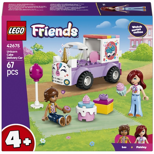 Inspireer kinderen vanaf 4 jaar om hun eigen verhalen te bedenken vol met eenhoorndetails en verjaardagsverrassingen! Met het LEGO® Friends Eenhoorn taartenbezorgauto speelgoed (42675) kunnen meisjes en jongens een schattige auto met eenhoornthema bouwen voor urenlange rollenspellen.