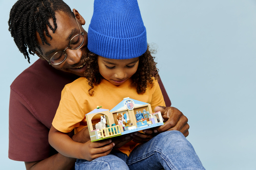 ZORG VOOR DE HUISDIEREN – de LEGO® Friends Huisdierenkliniek (42696) heeft alles wat kinderen nodig hebben om verhalen over dierenverzorging te vertellen, waaronder een paardenstal, onderzoekskamer, dierenspeelplaats en meer