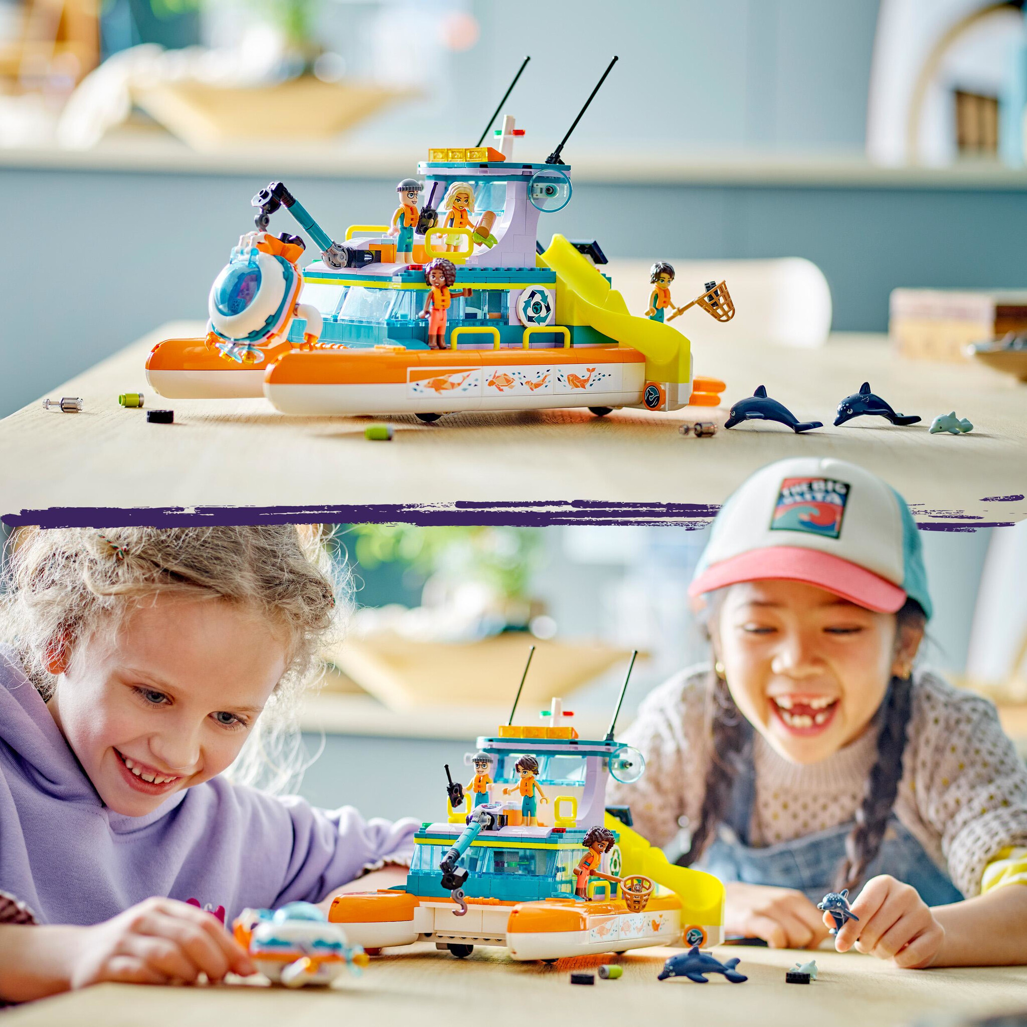 Natuurliefhebbers vanaf 7 jaar kunnen meer leren over het leven in de oceaan met deze gedetailleerde LEGO Friends Reddingsboot op zee (41734) bouw- en speelset met mini poppetjes. De set bevat een bouwbare catamaran die ook dienst doet als laboratorium