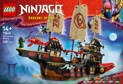 NINJAGO® fans van 14 jaar en ouder zullen het geweldig vinden om De Tempel Bounty (71848) toe te voegen aan hun verzameling LEGO® NINJAGO modellen. Dit grote en zeer gedetailleerde schip is het nieuwste model in een reeks beroemde NINJAGO schepen en zit boordevol coole kenmerken en functies. Inclusief een displaystandaard.