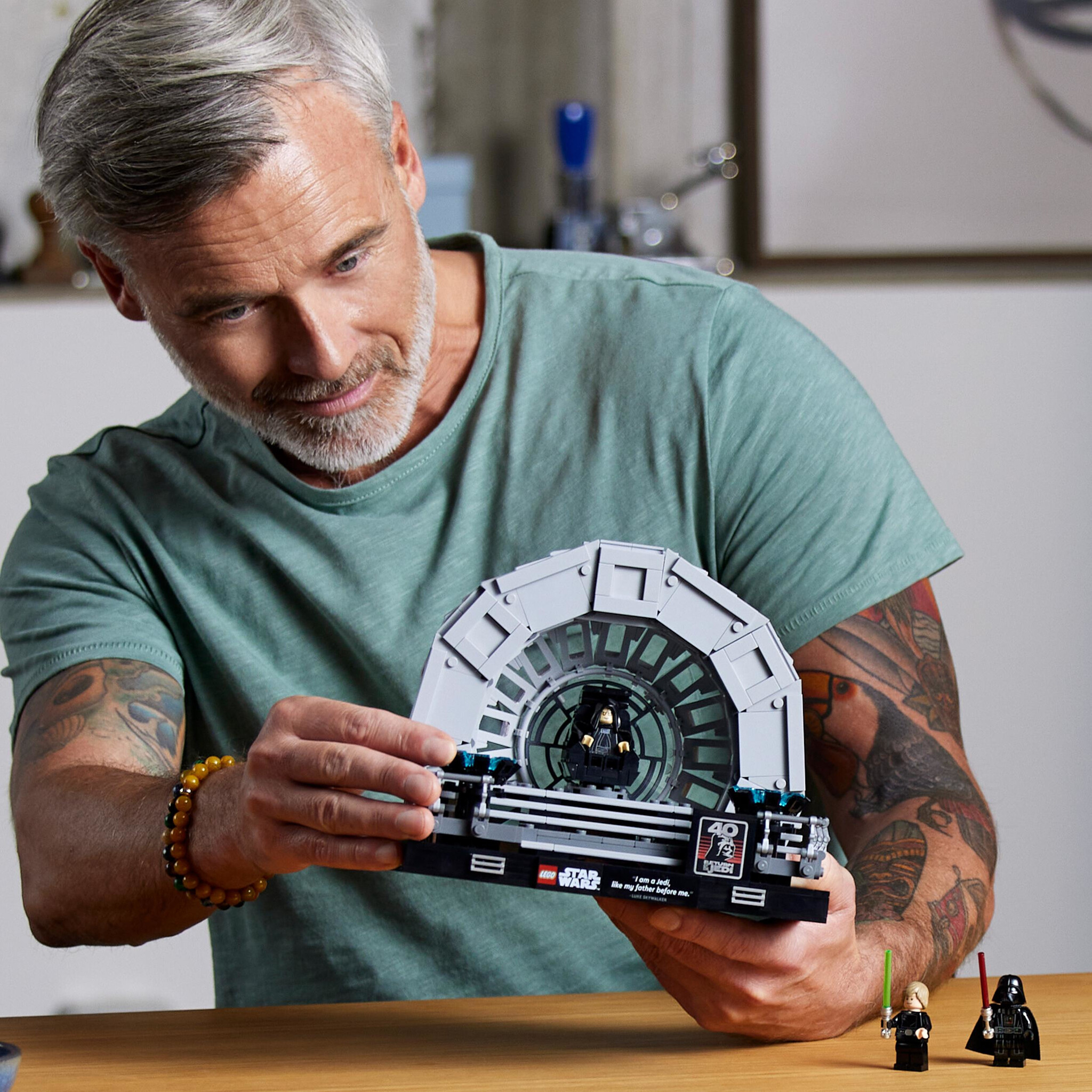 Beleef de dramatische climax van de klassieke Star Wars trilogie opnieuw met dit Troonzaal van de keizer diorama (75352) bouwpakket. Het model zit vol authentieke details, zoals een speciaal ontworpen Death Star vensterelement en de draaiende troon van ke