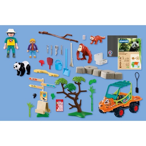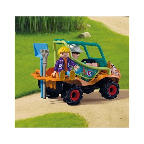 Met zijn opvallende tijgerkop-ontwerp is het robuuste bevoorradingsvoertuig in de dierentuin van Playmo-City een echte blikvanger. Vandaag brengt de dierenverzorger voer naar de panda, rode panda en orang-oetan in het Aziatische gedeelte van het park. Een leerling mag hem daarbij vergezellen en helpt bij het verzorgen van de dieren. Op de laadruimte is plaats voor belangrijke accessoires en dankzij de handgrepen kunnen twee kinderen veilig en comfortabel achterin meerijden. Met de innovatieve ontdekkingsbrillen kun je geheime informatie op de informatieborden over dieren zichtbaar maken – en de coole Motion Cards om te verzamelen lijken de dieren tot leven te wekken!